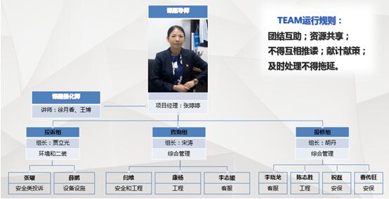 图1.007课题组成员 楼宇分公司总经理于斌对汇报内容进行了点评,他认为“建设信息反馈平台”课题组的分析调研过程详尽充分, 汇报结合实际,站在目前互联网+思维的前沿,在大数据时代下可以更好得将客户资源转化成企业运营资本,现代的物业公司应该从传统型逐渐往信息化、智能化的形式推进。